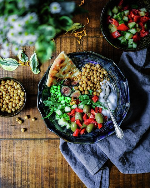 Un Buddha Bowl es un plato sencillo que combina alimentos cocinados y crudos aderezados con un aliño o salsa.